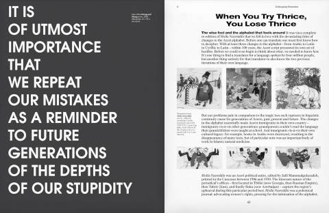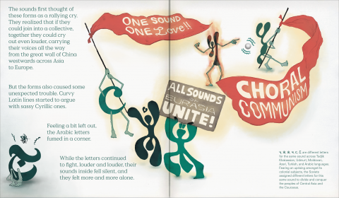 A mordant look at the constantly changing alphabets of 25 million people in the time of the Soviet Union. This interactive book offers a whirlwind tour of ABCs and anticolonialism in the former Soviet sphere.