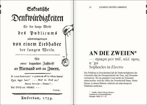J.G. Hamann’s famous dedication – To Nobody and to Two – is an invitation to think beyond the binaries of Enlightenment thinking.