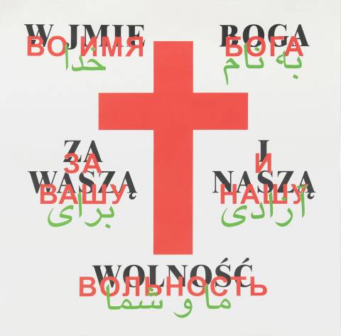 Unlike the more heteronormative eagles on the Polish or German flags, the eagle on Russia’s coat of arms swings both ways, facing both East and West. Taking its cues from Byzantine heraldry where emperors were also Christ’s representatives on earth, Bicephalic layers Russia’s particular position as Europe and Asia, self and other onto the bi-sexual flag, arguing for a geopolitical identity through non binary sexuality.