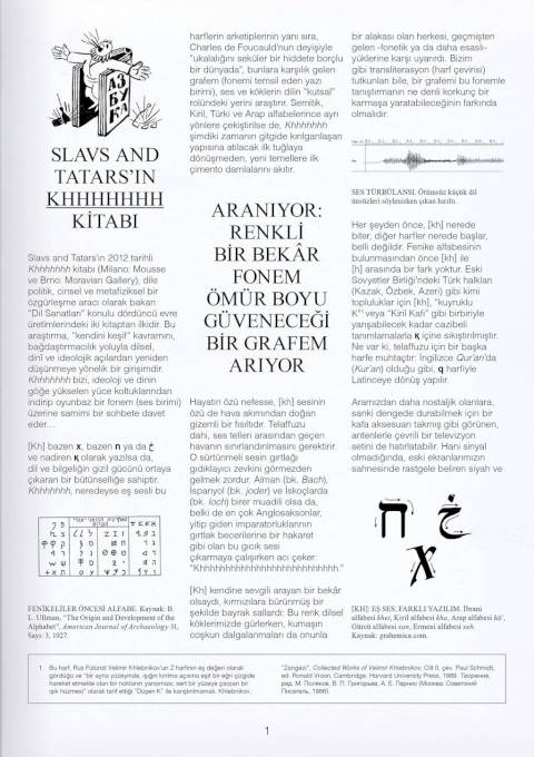 We first tried to redress this imbalance with Khhhhhhh, a publication which passed over the tongue and the mouth in general, to see in the throat a phonetic source of sacred agency, be it in the Arabic Abjad, Hebrew Gematria, or Russian Futurism à la Khlebnikov. This time around, we indulge the proboscis and find in the nose a particular site of resistance in the Slavic and Turkic languages. The drive to Cyrillicize Polish hit rather steep speed bumps in the shape of the nasal vowels ą and ę. If Slavic languages ever had nasal sounds, most have since been lost, save for those in Polish and some instances of Bulgarian. […]”
