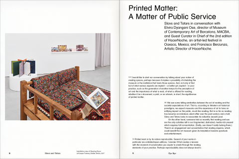 Published on the occasion of the exhibition, Лук Бук offers a comprehensive overview of Slavs and Tatars’ printed matter. Featuring essays by Pablo Larios and Dina Akhmadeeva, the catalogue demonstrates print’s unique ability to convey the conjunction of scholarly analysis, humor, and generosity of spirit that has become a trademark of the collective’s output.