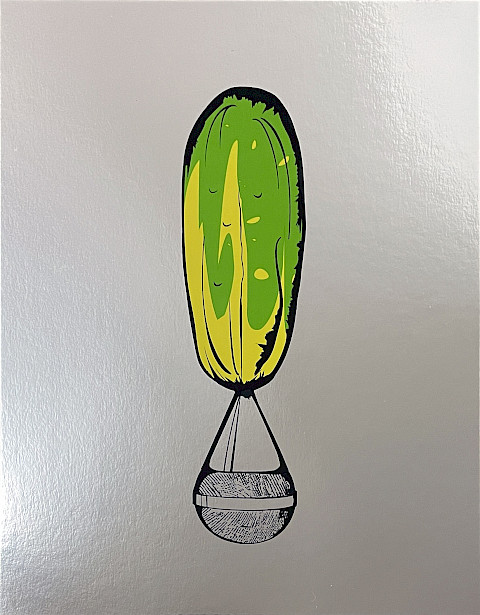 Via its prolific use as a shorthand for satire, humor and comedy, here the gherkin becomes a verb, an imperative, in the shape of an exclamation mark.